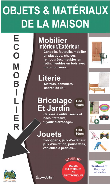 Pour cela, le SYMTOMA (le syndicat de traitement des déchets dont la commune dépend) a signé un accord de reprise avec la filière consacrée au mobilier. Vous pourrez donc, sur les conseils du gardien, jeter ces objets dans la benne à « meubles ». Mais attention, si le jouet ou l’ABJ est électrique (à piles ou reliable au secteur), il devra suivre la filière des déchets électriques déjà en place depuis des années. Et s’il est de taille modeste (moins de 80 cm pour toutes ses dimensions), il devra être jeté dans la benne à tout-venant pour y être comptabilisé autrement.
